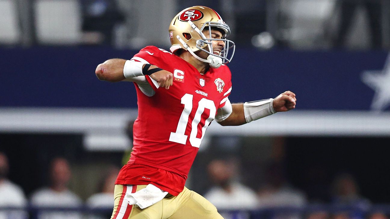 SANTA CLARA, Calif. -- Already playing through a torn ligament in his right thumb, San Francisco 49ers quarterback Jimmy Garoppolo suffered another injury in Sunday's victory over the Dallas Cowboys.