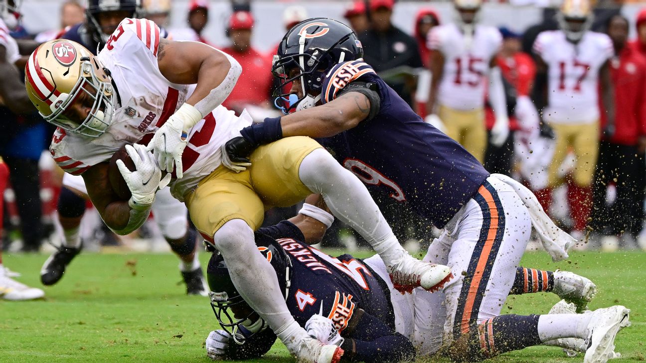 After Mitchell was ruled out, it wasn't clear how he was hurt, but Shanahan said Monday that the running back suffered the injury on an 11-yard run off left tackle with 12:54 left in the second quarter. Replays show Bears safety Eddie Jackson diving to make the tackle on Mitchell and colliding with his knee just as Mitchell is planting his foot in the ground.