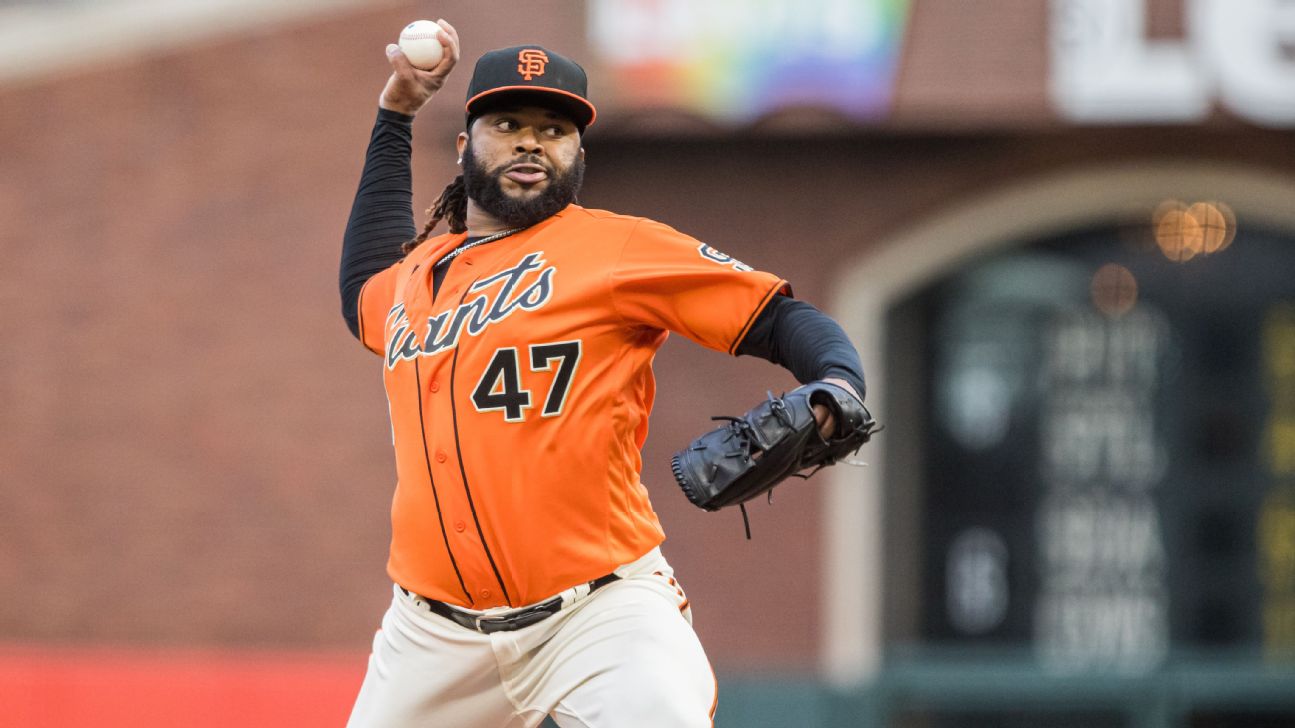 SAN FRANCISCO -- Right-hander Johnny Cueto was scratched from his scheduled start for San Francisco on Monday night against Milwaukee because of cold and flu-like symptoms, while fellow Giants starter Alex Wood tested positive for COVID-19 and is experiencing symptoms.