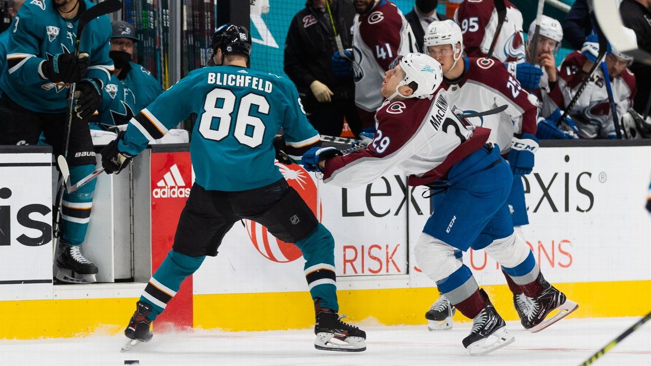 NEW YORK -- San Jose Sharks forward Joachim Blichfeld was suspended for two games without pay by the NHL on Thursday for an illegal check to the head of Colorado's Nathan MacKinnon.