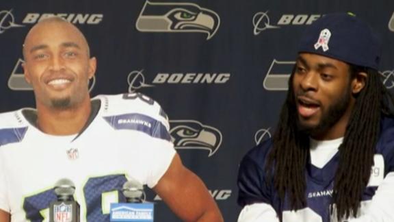 RENTON, Wash. --Seahawks cornerback Richard Sherman and receiver Doug Baldwin did a parody in front of reporters Tuesday, making a point of criticizing the NFL over fining teammate Marshawn Lynch $100,000 for not talking to the media.