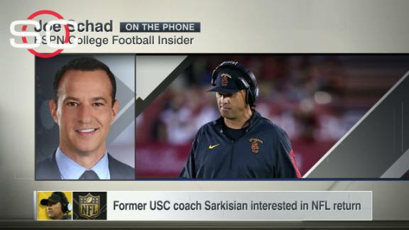 FormerUSChead coach Steve Sarkisian is putting out feelers to NFL teams and has expressed interest in returning to the NFL as either a quarterbacks coach or an offensive coordinator, league sources told ESPN NFL Insider Adam Schefter.