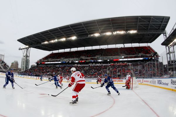 On Sunday, the start of the Centennial Classic between the Detroit Red Wings and Toronto Maple Leafs at Exhibition Stadium was delayed a half hour because of glare from the sun on the ice. The league cited player safety as the reason for its decision to push back the puck drop to 3:53 p.m. ET following pregame festivities.