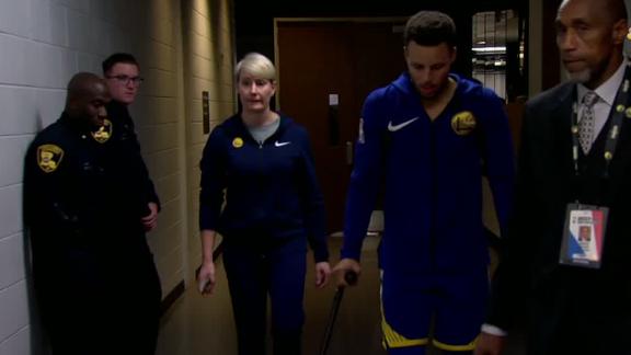 "I didn't see him twist it, but I seen him coming back with some crutches, so just staying positive," Warriors star Kevin Durant added. "Hopefully he gets better quick, but we also want him to take his time and make sure that thing's 100 percent. It sucks, man. Late in the game like that and for him to be on crutches, hopefully it gets better."