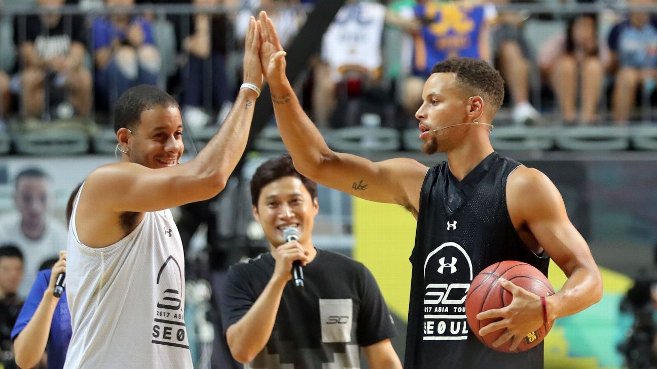 Curry shows that selling sneakers isn't just a part-time job, it's an international one.