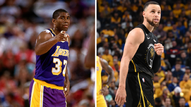 When ESPN did its ranking of the NBA's 75th anniversary team in the 2021-22 season, Johnson ranked fourth overall, behind a shooting guard (Jordan), a forward (James) and a center (Kareem Abdul-Jabbar). Meanwhile Curry ranked 16th -- though that was before his fourth title and first Finals MVP Award.