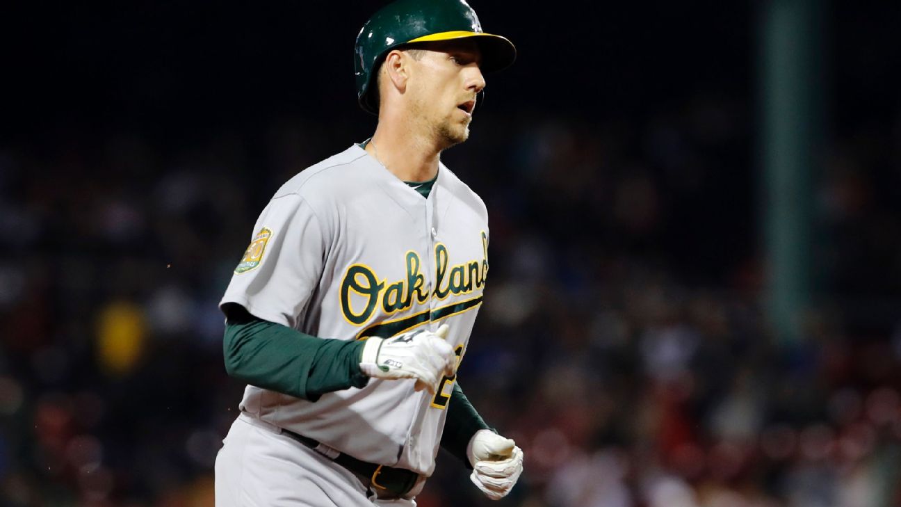 BOSTON -- Oakland Athletics outfielder Stephen Piscottyreturned to the lineup after the club reinstated him from the bereavement list and made an immediate impact, hitting a solo home run in his first at-bat Tuesday night against the Boston Red Sox.