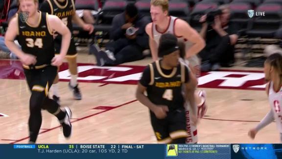 Raynaud and Stojakovic scored eight points apiece to guide Stanford to a 41-22 lead at halftime. Linhardt had five first-half points as the Idaho bench accounted 12 of the Vandals' total at intermission.