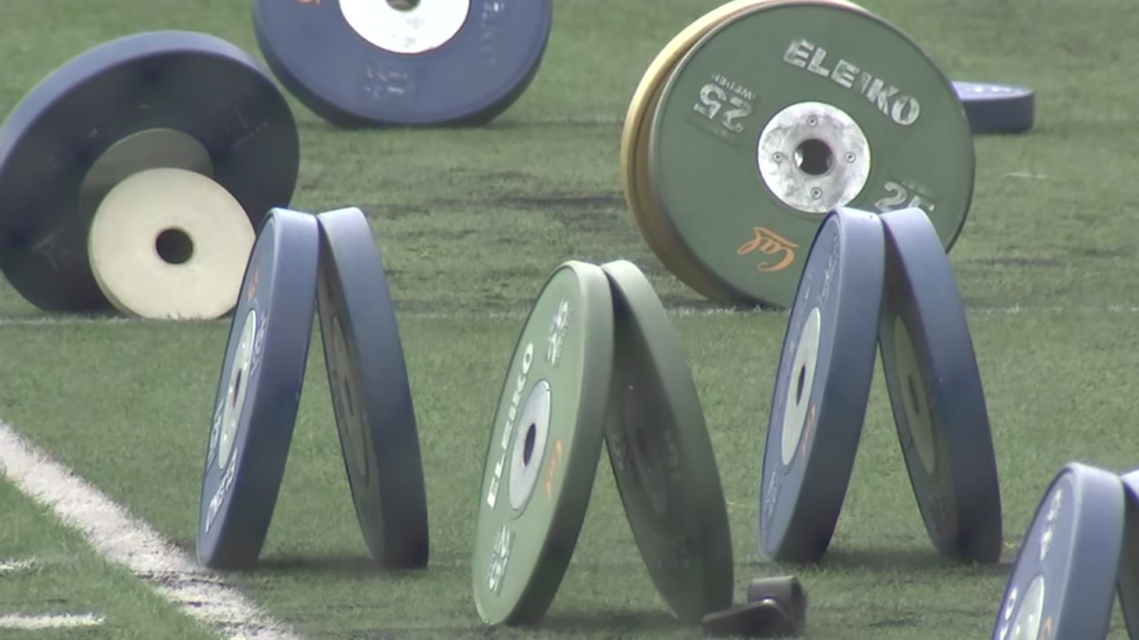 Thursday, weights could be seen on the side of the practice football field at UC Berkeley.