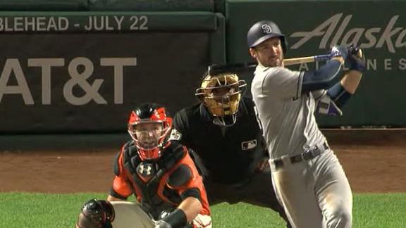 The Padres blew a three-run lead with two outs in the ninth when Giants pinch-hitter Conor Gillaspie homered off closer Brandon Maurer, but San Diego won in extra innings after scoring off George Kontos (0-4).