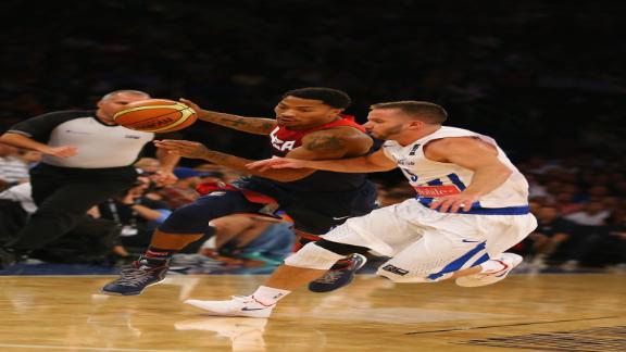 He did provide the Garden fans with a highlight early in the fourth quarter when he drove to the basket and scored on an up-and-under layup with 9:53 left to push the Americans up by 22.