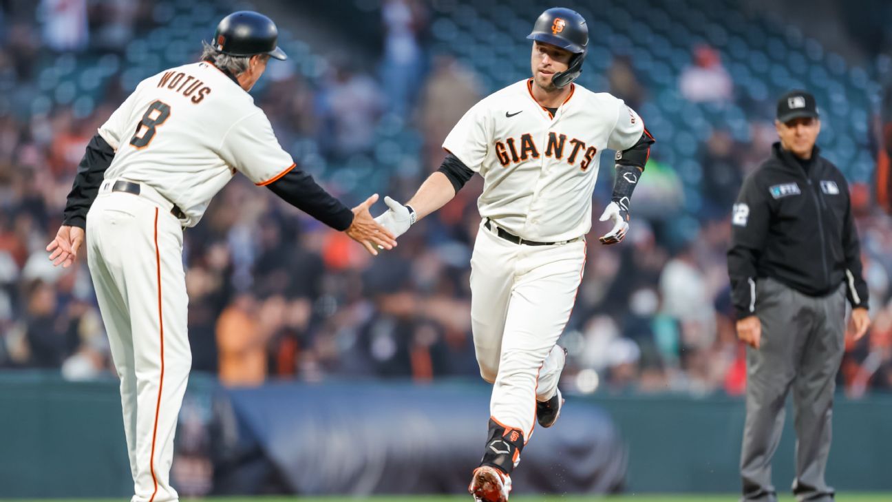 "Before the season started, you could envision one of these veteran players having a career year," Kapler says. "But I think it would have been difficult to envision Evan Longoria with a .900 OPS, Brandon Crawford playing at an MVP level, Buster Posey being the most valuable catcher in the game, and Brandon Belt being on pace for one of the best years of his career."