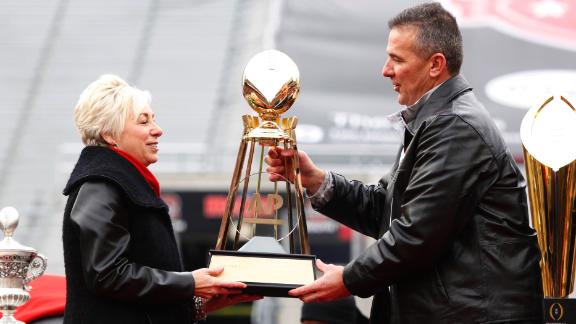Ohio State football players received their College Football Playoff championship rings on Friday morning, the first of three rings that the school will give the players.