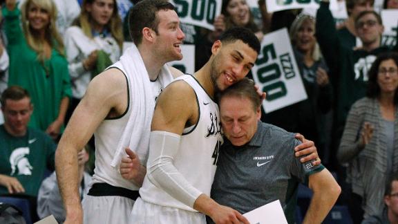 "Mike Krzyzewski is not sitting home shaking," Izzo said, referring to the Duke coach whose 1,023 victories are the most in Division I history, "but in some ways I got it better than anybody because it's the players I got."