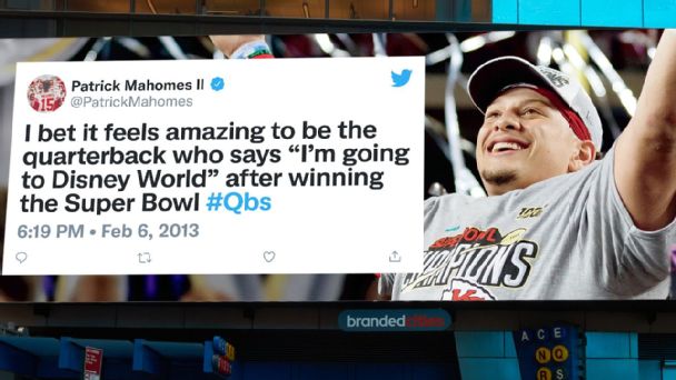 Mahomes signaled his future Super Bowl success in 2013. The tweet came three days after the Baltimore Ravens defeated the 49ers in Super Bowl XLVII. In 2013, Mahomes was a high school junior and more than a year from committing to play football at Texas Tech. The tweet came almost seven years to the day prior to his Super Bowl LIV triumph.