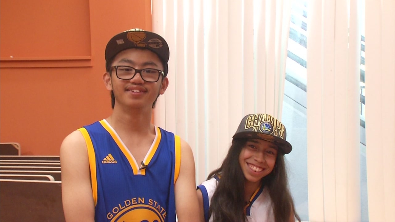 OAKLAND, Calif. (KGO) -- Two young Warriors fans received a huge surprise Monday-a reward for their hard work with the Boys and Girls Clubs of San Francisco.