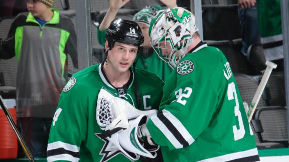 Stars forward Patrick Eaves followed Seguin to the locker room 51 seconds later after teammate John Klingberg's wrist shot hit him in the head.