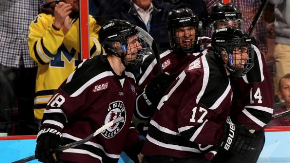 NOTES: Union last met Minnesota in 2010-11, when it won 3-2 in Minneapolis. The overall series is tied 2-2 . ... Flyers general manager Paul Holmgren dropped the ceremonial first puck. Holmgren played for the 1974-75 Minnesota team that lost to Michigan Tech in the national title game. ... The 2015 Frozen Four will be played at TD Garden in Boston.br/]