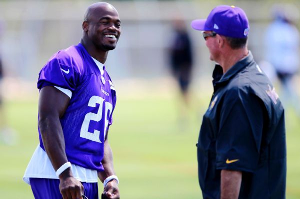 The coach said Peterson would be a full participant in practice this week but said he didn't know whether the team would get an emotional lift from Peterson returning.