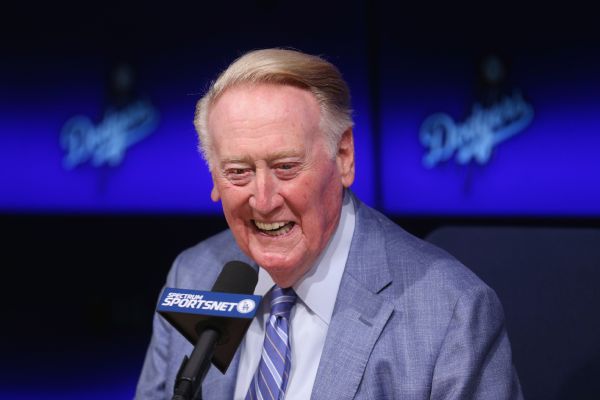 LOS ANGELES -- Vin Scully returned to Dodger Stadium on Wednesday, cracking jokes and telling stories as if he had never left.