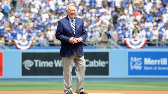 "I'm obviously not alone in saying that I'm overjoyed Vin will be coming back to the booth in 2015," Dodger president Stan Kasten said in a statement. "Our fans deserve the very best, and Vin's voice, knowledge, experience and passion for broadcasting Dodger baseball are second to none."br/]