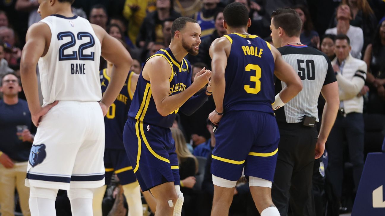 SAN FRANCISCO -- With Golden StateleadingMemphisby just two points with 1:14 remaining Wednesday night,Stephen Curry clapped his hands at Jordan Poole after what Curry said he thought was an ill-advised 3-point attempt by his Warriors teammate.