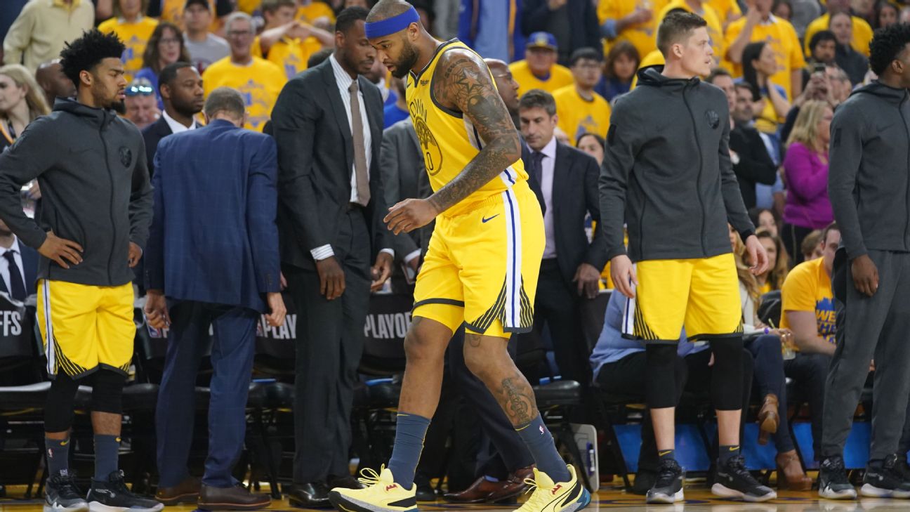 "It's tough, for sure," Warriors guard Stephen Curry said. "You feel for him considering what he's been through this last year. This is a big stage, the playoffs. He's been looking forward to this. I don't know the extent of the injury at this point. Hope he gets back sooner than later. Just man-to-man in terms of him, what he's been through, it's tough for sure. There's no sugarcoating it at all. You hate seeing that opportunity again on this big stage taken away from him like that."