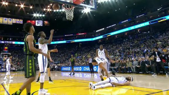 The injury occurred when teammate JaVale McGee elevated for a block attempt and ended up falling on Curry's left leg. The two-time NBA MVP immediately began hopping and then limping in pain.