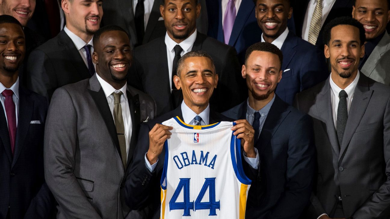 The Warriors visited Obama, a huge hoops fan, in the White House in February 2016 to celebrate their 2015 championship.