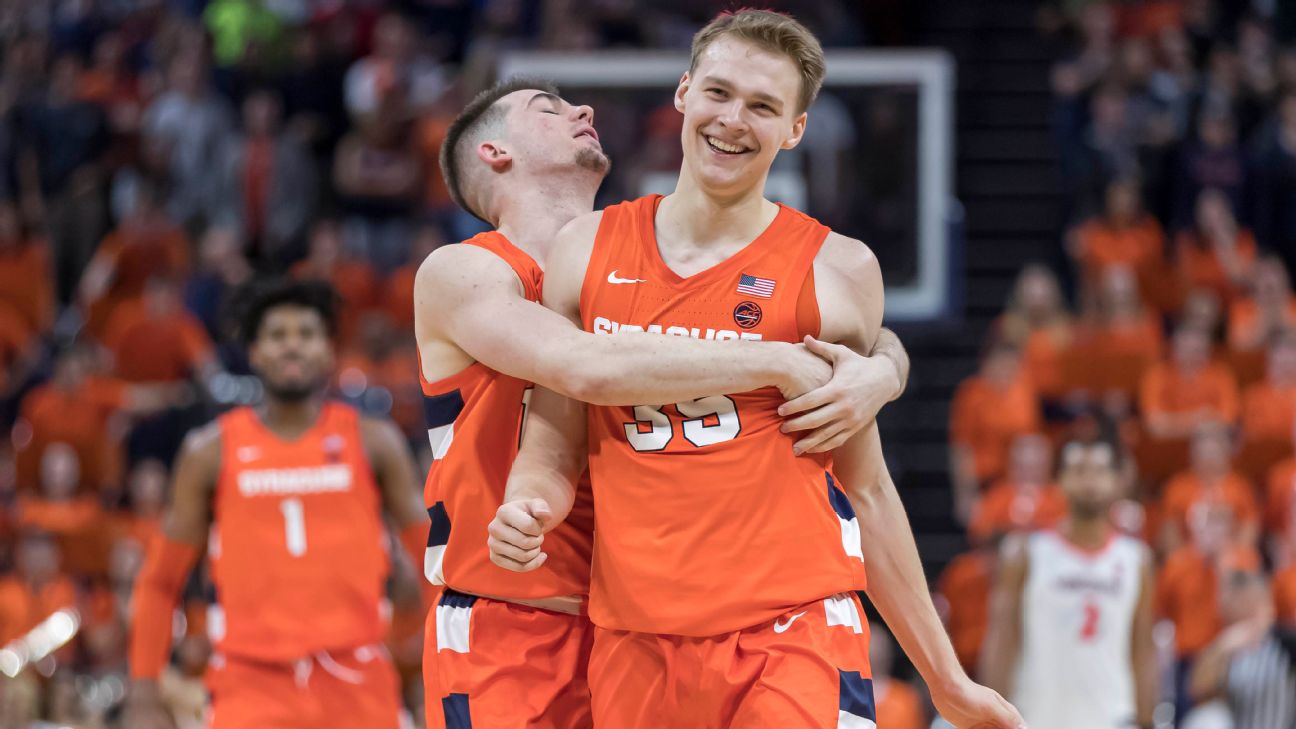Overachieving: Syracuse. Picked to finish eighth in the league's preseason poll in a rebuilding year, Jim Boeheim's squad (which gets the slight edge here over an also-surprising Virginia Tech team) has started with a 6-3 record in conference play after winning five consecutive games. Yes, the ACC ain't the typical ACC this season. But the Orange climbed into the 60s of the NCAA's NET rankings and could crack the NCAA tournament bubble at this pace. Elijah Hughes and Buddy Boeheim have combined to average more than 37 points per game, while collectively connecting on nearly 40% of their 3-point attempts.