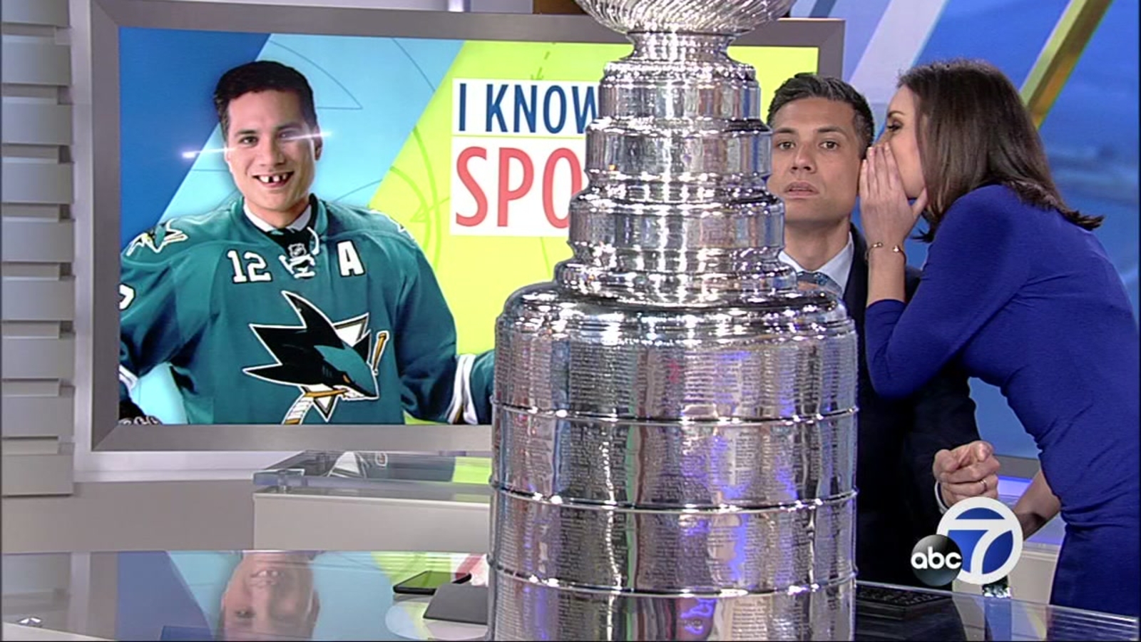 SAN FRANCISCO (KGO) -- Reggie Aqui's "I Know Sports" segment got upstaged by a giant piece of silver. Well, he thought it was a giant piece of silver, everyone else knows it as the Stanley Cup.