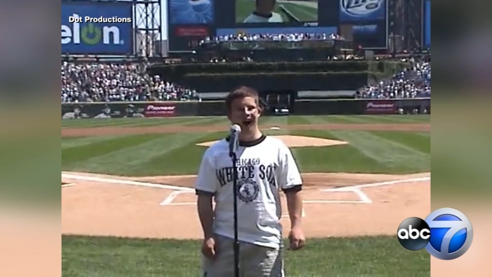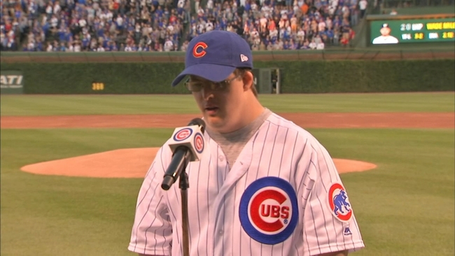 Stefan Xidas sang the national anthem ahead of the Cubs game against the Brewers.
