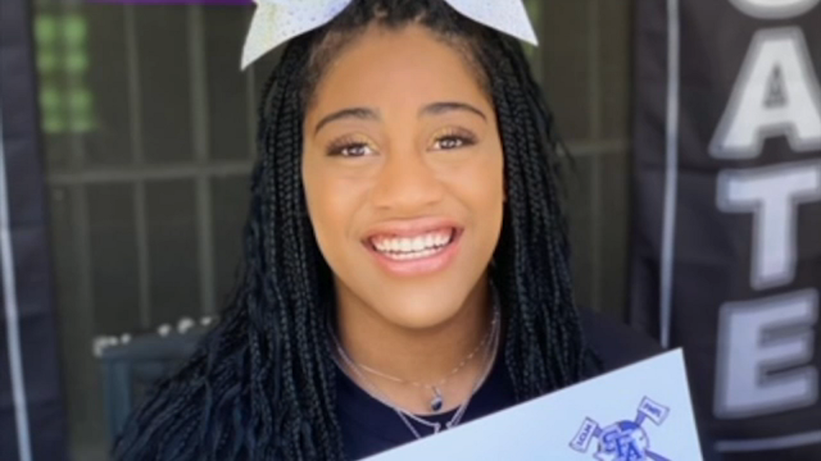 NACOGDOCHES, Texas -- A cheerleader at Stephen F. Austin State University in Texas is at the center of a swatting investigation in which her family said police stormed into her dorm room with guns drawn over a false report.