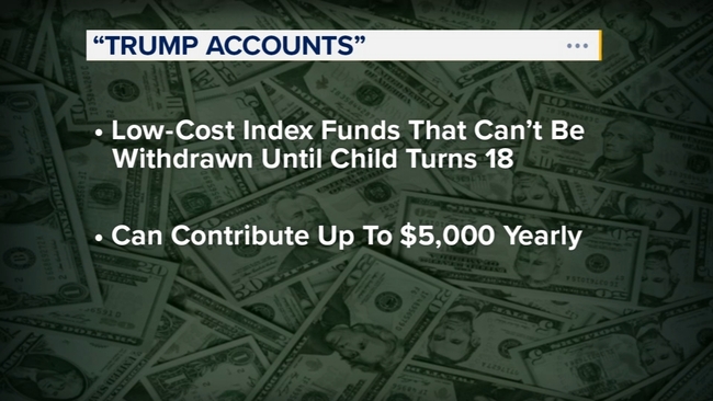 Under the new law, "Trump Accounts" are available to any American child under 18 with a Social Security number. Account contributions must be invested in an index fund that tracks the overall stock market. When the children turn 18, they can withdraw the funds to put toward their education, to buy a home or to start a business.