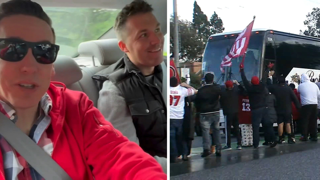 VIDEO: Faithful send 49ers off to Las Vegas in wet weather, while news crew spends 10 hours flying there