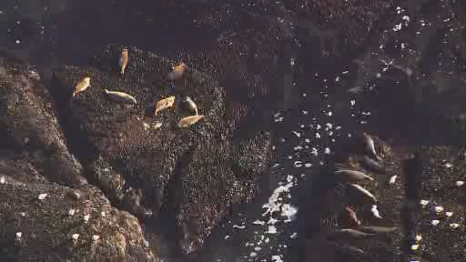 SKY7 spotted a group of seals at Fitzgerald Marine Reserve in Moss Beach relaxing on a rock during Wednesday's super low tide.