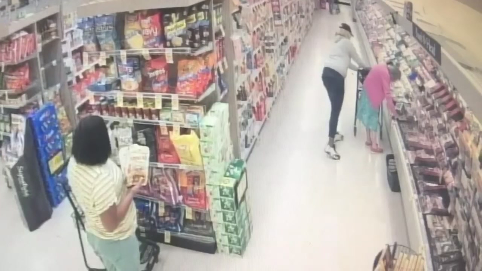 Police say the victim didn't realize her wallet was gone until she tried to pay for groceries.