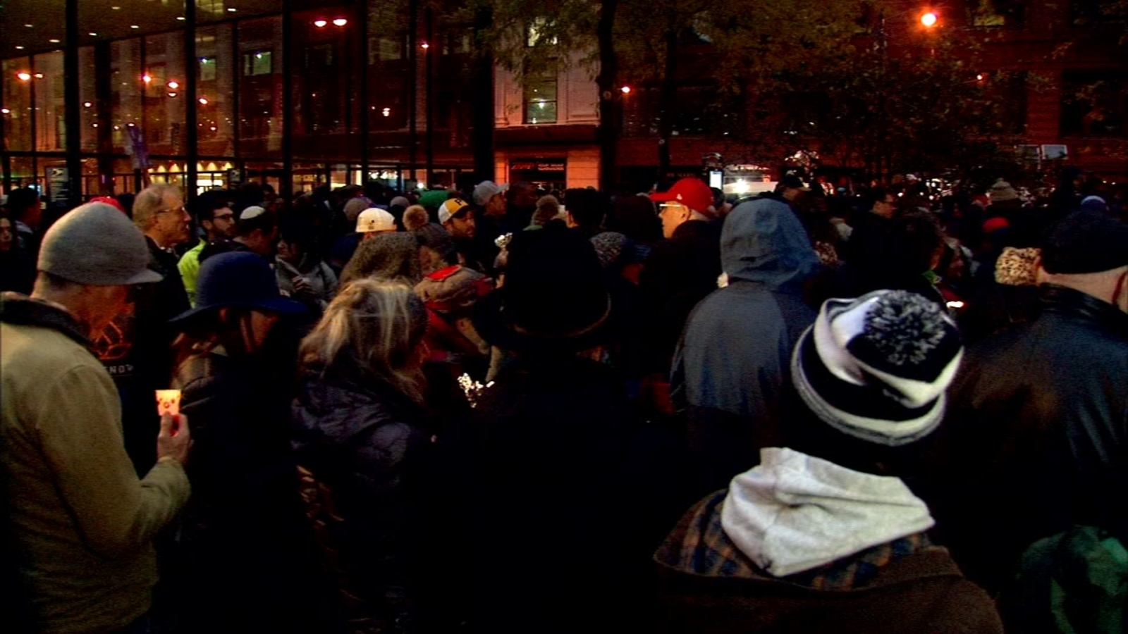 People lit candles in tribute to those 11 victims identified Sunday. Tags were tied to trees around the plaza sending messages of love and hope. While religious leaders of all denominations took to the stage in a call for unity.