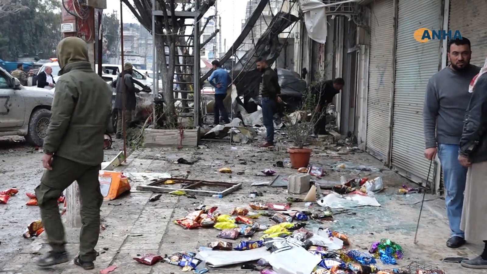 Videos released by local activists and news agencies showed a restaurant that suffered extensive damage and a street covered with debris and blood. Several cars were also damaged. Another video showed a helicopter flying over the area.
