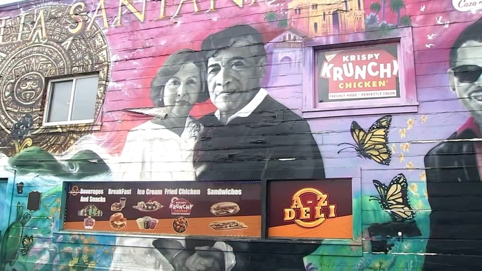 Fried chicken ad found below mural of Carlos Santana in SF