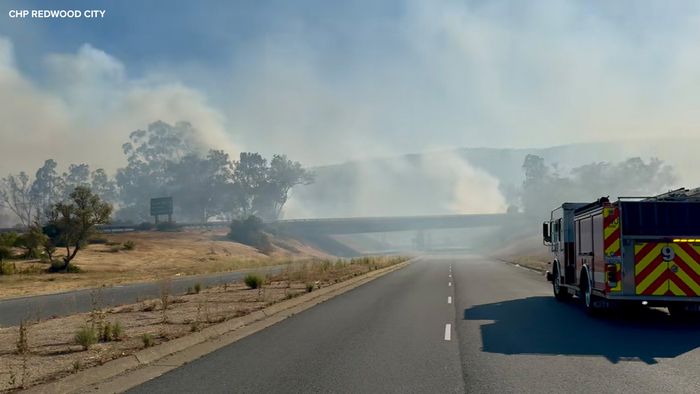 Forward progress has been stopped after a 4-alarm fire broke out in San Mateo County Saturday, authorities said. Lanes were initially shut down on both sides of I-280 between Farm Hill Boulevard and Edgewood Road after a car fire quickly spread to nearby vegetation.