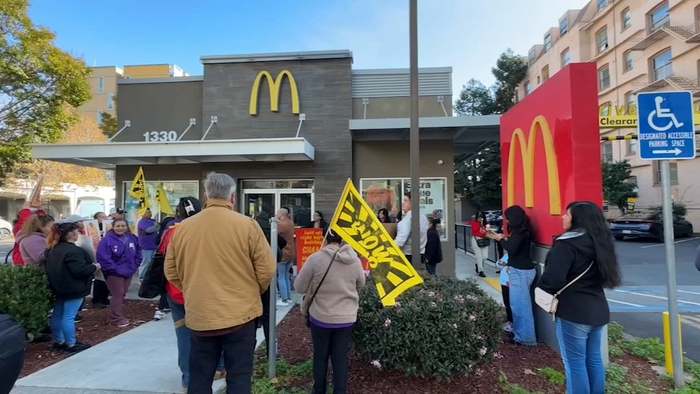 A small but vocal group of workers, mainly made up of cooks and cashiers, set up in front of the Jackson Street location and called for McDonald's to help place them in other locations instead of taking their jobs away.