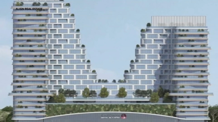 The site of the original Marina Safeway could become a 25-story housing development, with 790 apartment units, if a real estate development company has its way. But there's already pushback to the large project.