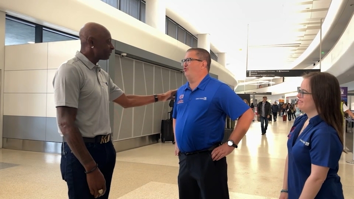 Some very excited United Airlines employees got to meet former San Francisco 49er and hall-of-famer Jerry Rice at SFO Friday morning.