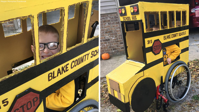 This Halloween, Blake Mompher might just have the coolest costume in the neighborhood: a custom yellow school bus built to fit over his wheelchair.