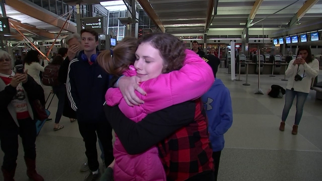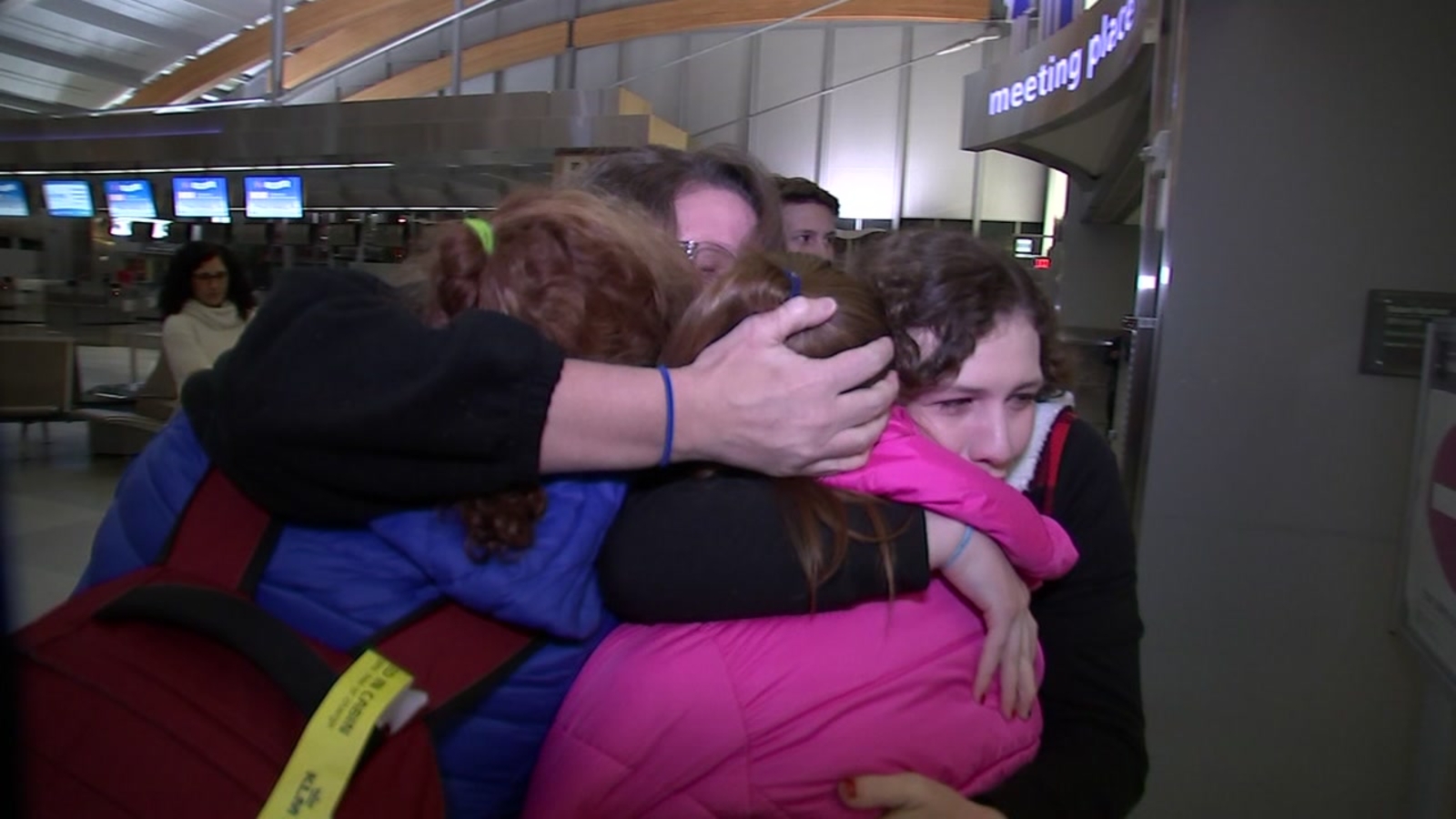 A sea of hugs and tears erupted as the family reunited in the terminal.