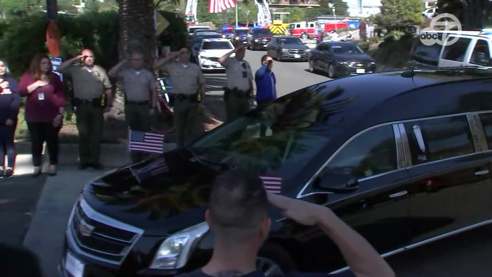The emotional procession ended with hundreds of Ventura County sheriff's officials saluting Helus' body as the hearse pulled into the coroner's office.