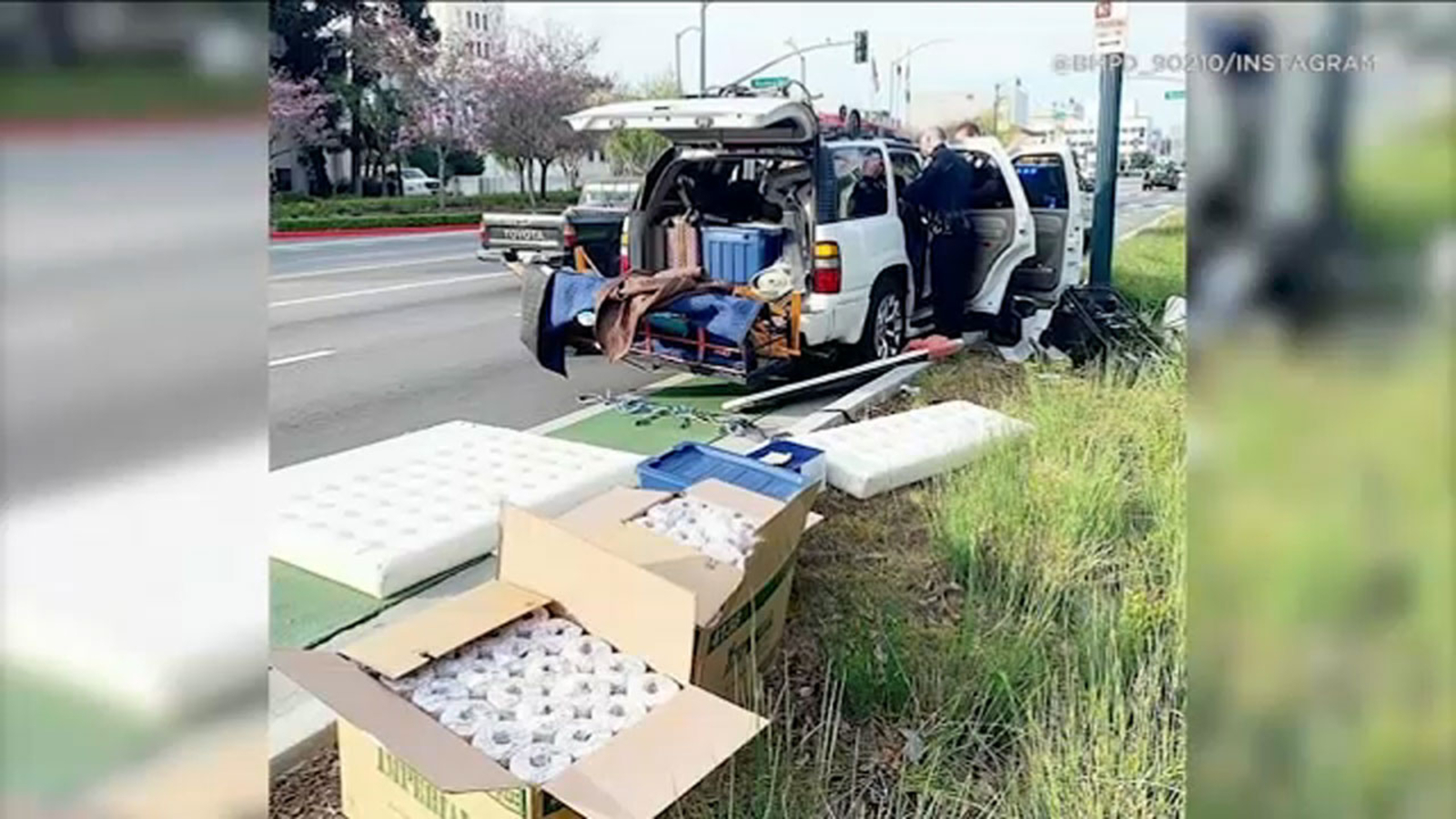 BEVERLY HILLS, Calif. -- After conducting a traffic stop on a stolen vehicle, the Beverly Hills Police Department found something unexpected... 192 rolls of toilet paper.