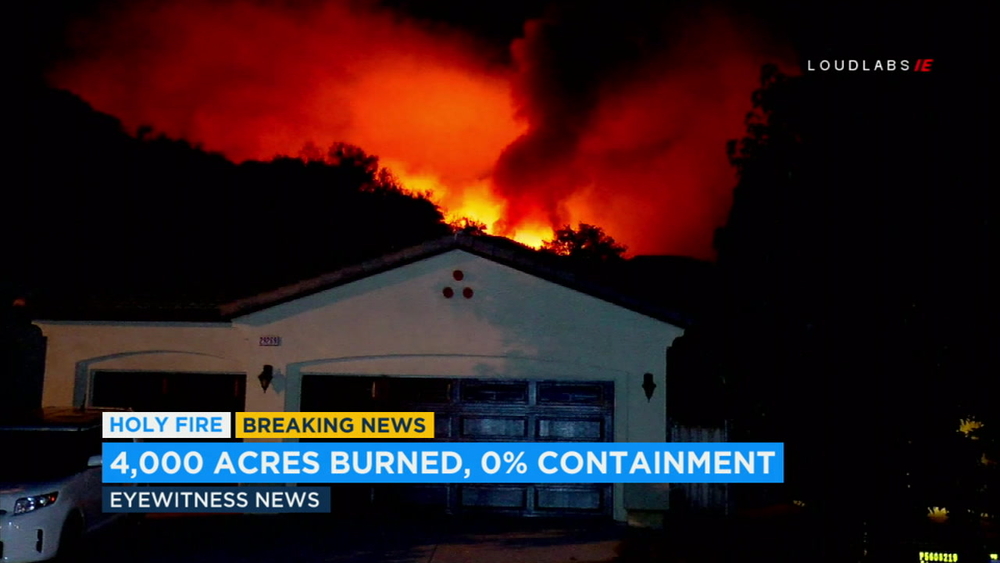 TRABUCO CANYON, Calif. -- The Holy Fire is not letting up Wednesday as it continues to burn out of control in the Cleveland National Forest in Southern California for the third day.