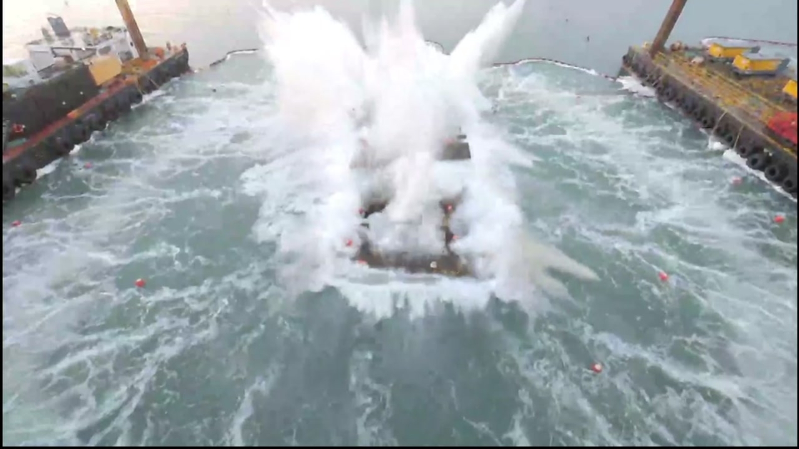 "We had a slight delay because the seal was spotted in the exclusion zone," Lopez said. "We had marine mammal watchers on scene. We followed protocol, and after the animal left the area, we were able to successfully complete the implosion at 7:30 a.m."